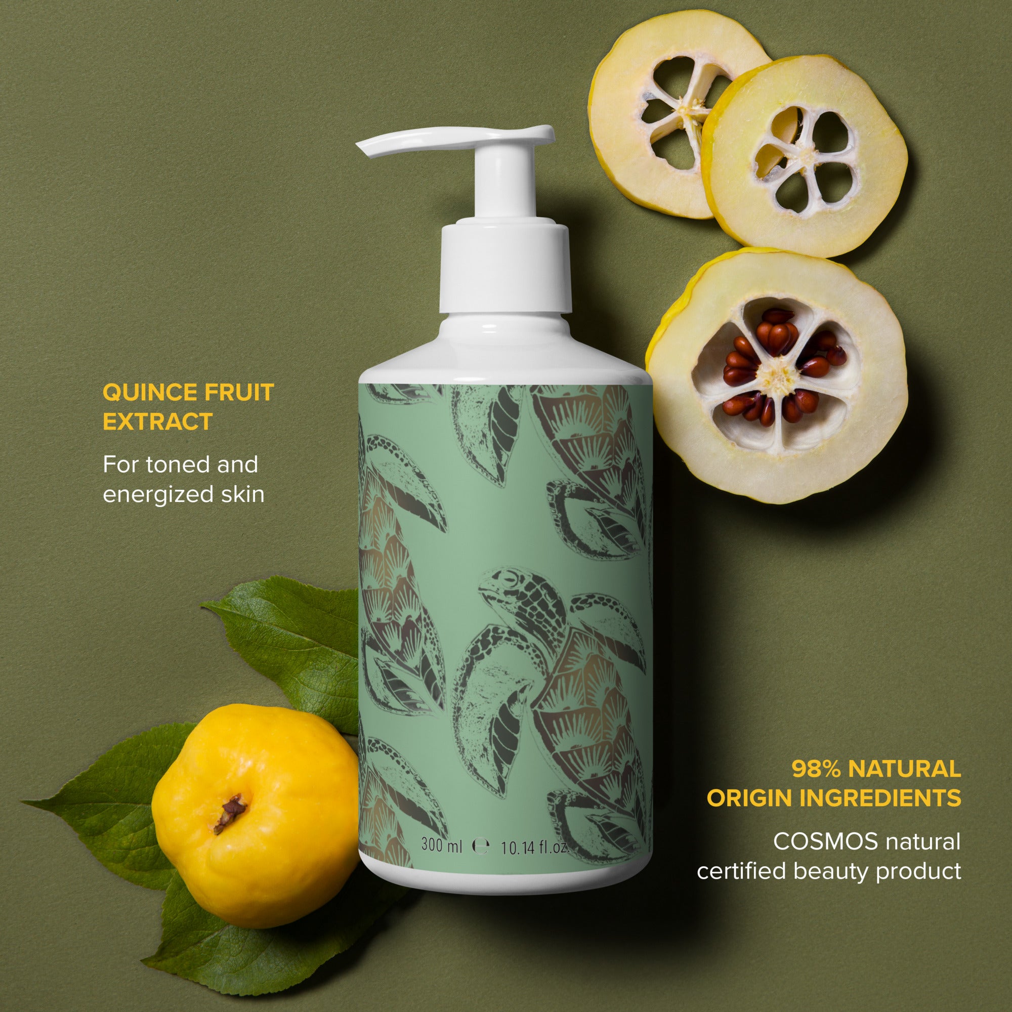Ingredients: Aqua/Water, Sodium Coco-Sulfate, Sodium Cocoamphoacetate, Cocamidopropyl Betaine, Betaine, Coco-Glucoside, Citric Acid, Sodium Chloride, Parfum/Fragrance, Benzyl Alcohol, Pyrus Cydonia (Quince) Fruit Extract*, Sodium Benzoate, Potassium Sorbate, Linalool**, Citral**, Limonene**.